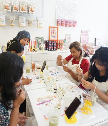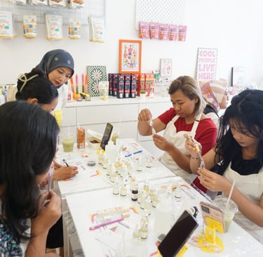 Here, creativity becomes a bridge — connecting locals and travelers through shared experiences in perfume making, skincare crafting, painting, batik art, baking, and more. Every session is guided by passionate local instructors who share the beauty of Indonesian artistry with warmth and authenticity.
